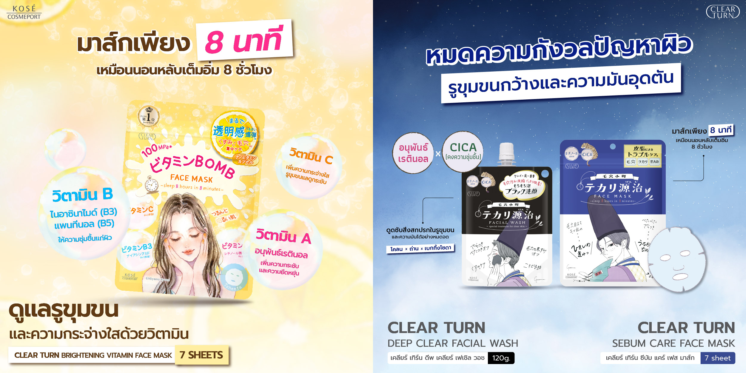 CLEAR TURN MOISTURIZING FACE MASK 7 SHEETS / เคลียร์ เทิร์น มอยส์เจอร์ไรซิ่ง เฟส มาส์ก (7 แผ่น) ...