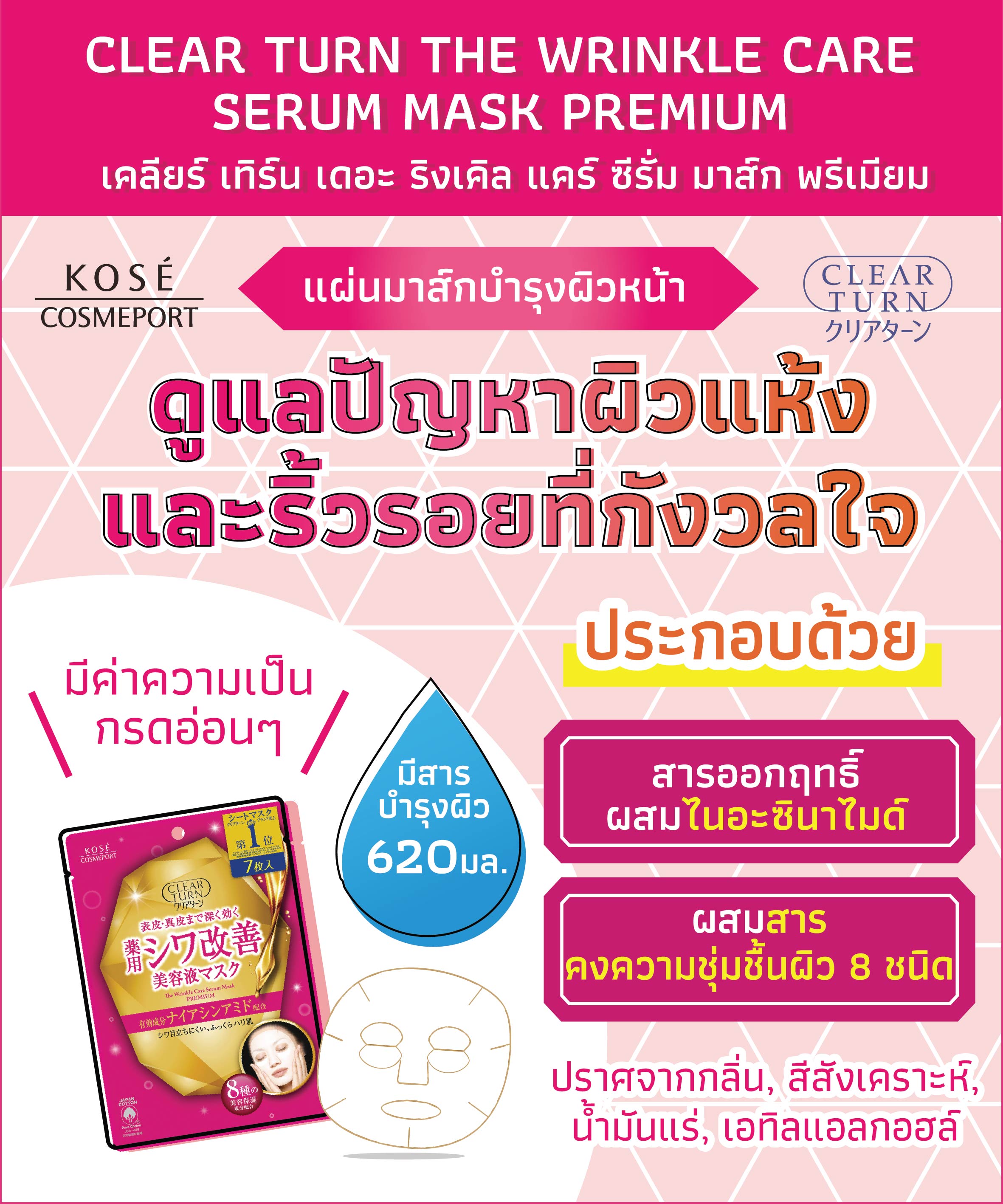 เคลียร์ เทิร์น เดอะ ริงเคิล แคร์ ซีรั่ม มาส์ก พรีเมียม (7 แผ่น )