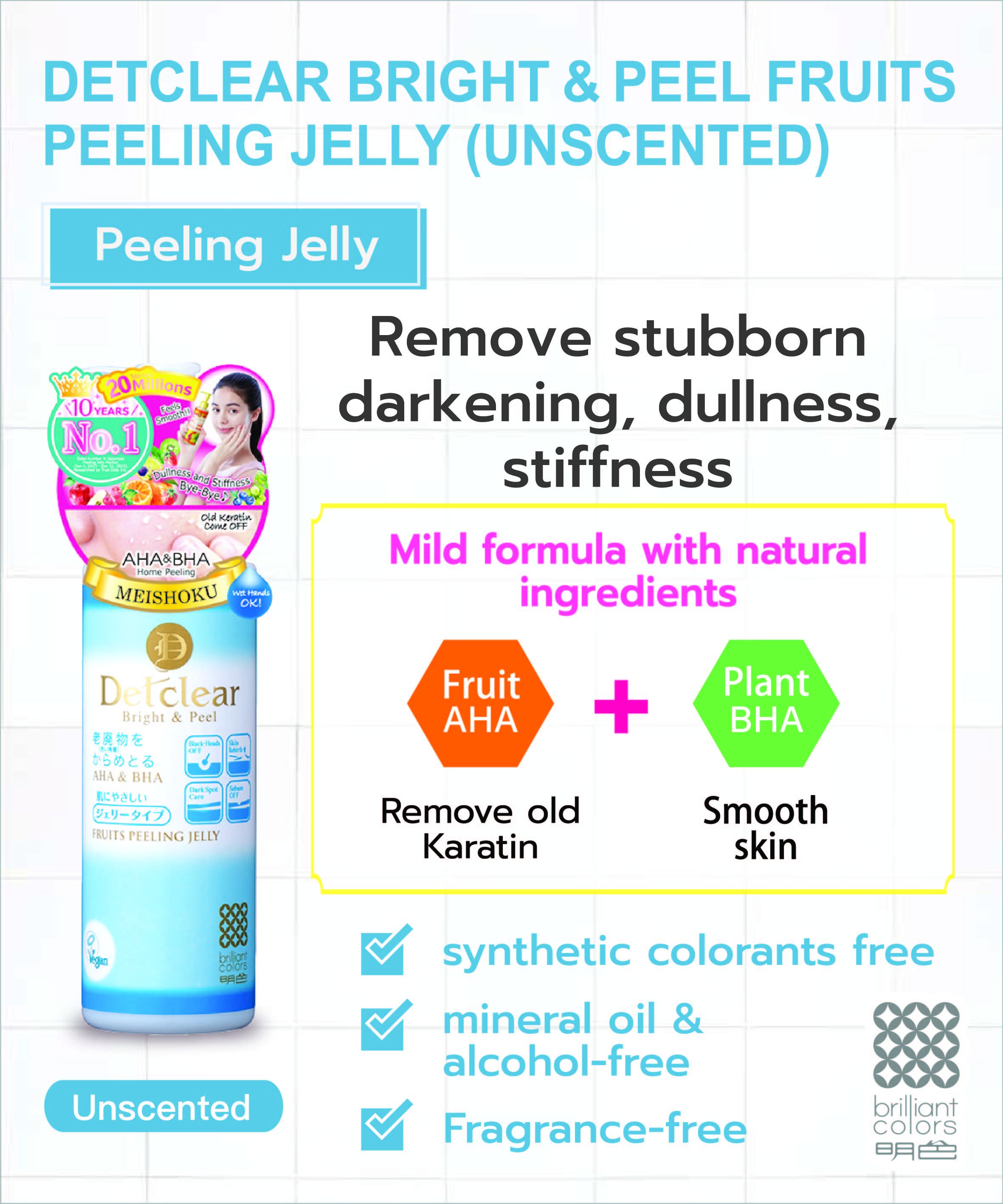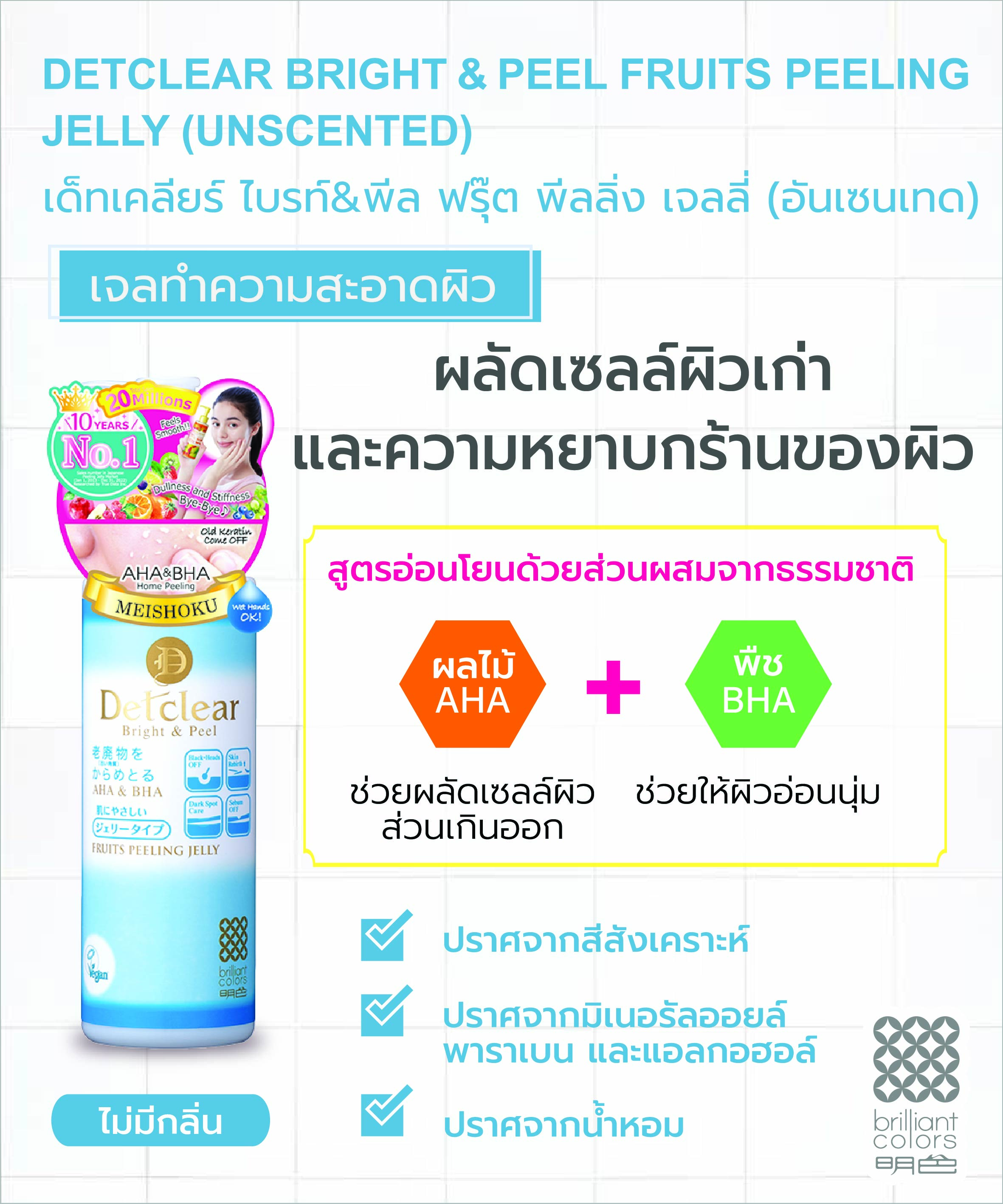 DETCLEAR BRIGHT&PEEL FRUITS PEELING JELLY (UNSCENTED) 180 ml. เด็ทเคลียร์ ไบรท์&พีล ฟรุ๊ต พีลลิ่ง เจลลี่ (อันเซนเทด) 180 มล.