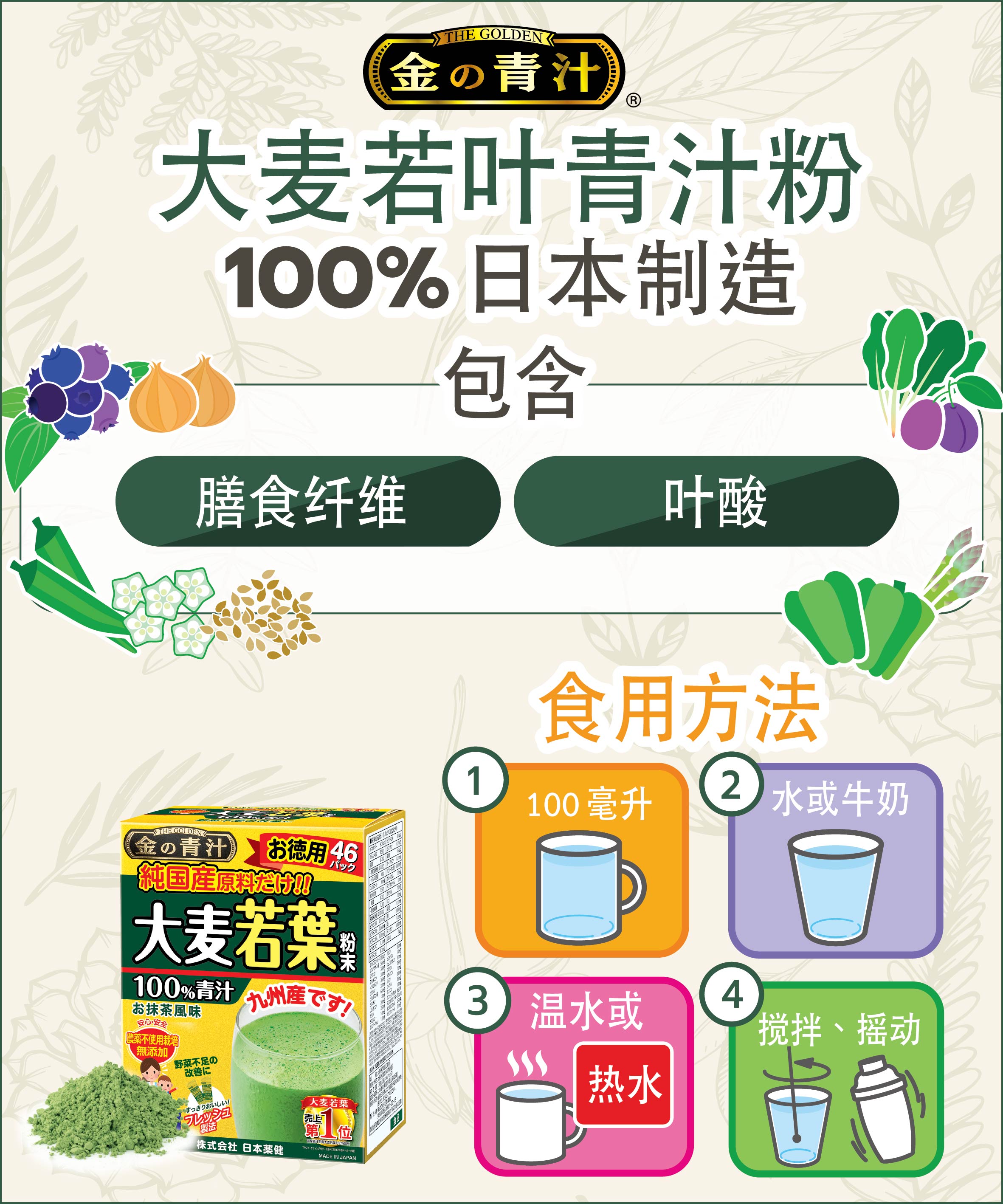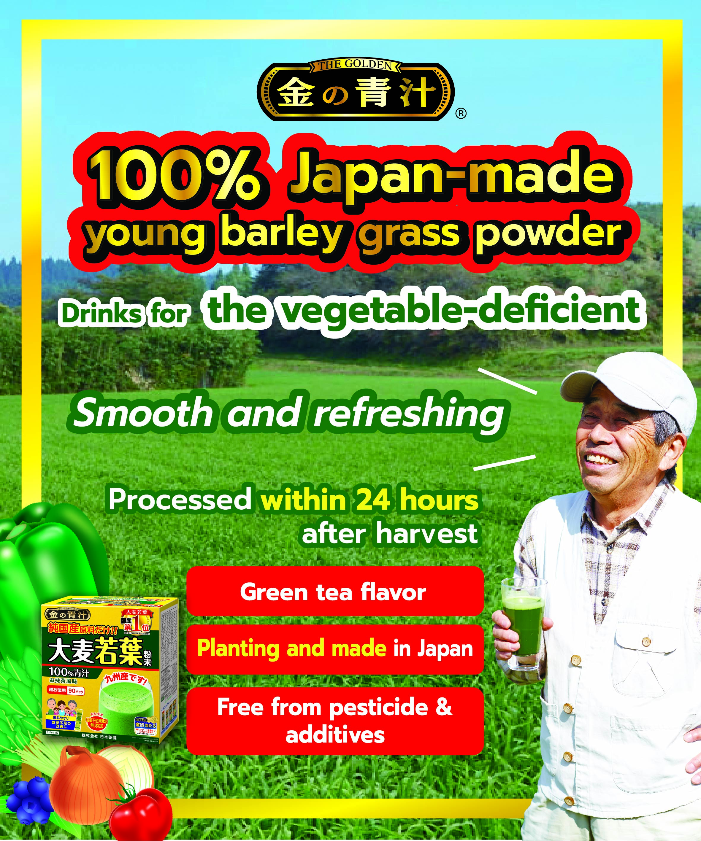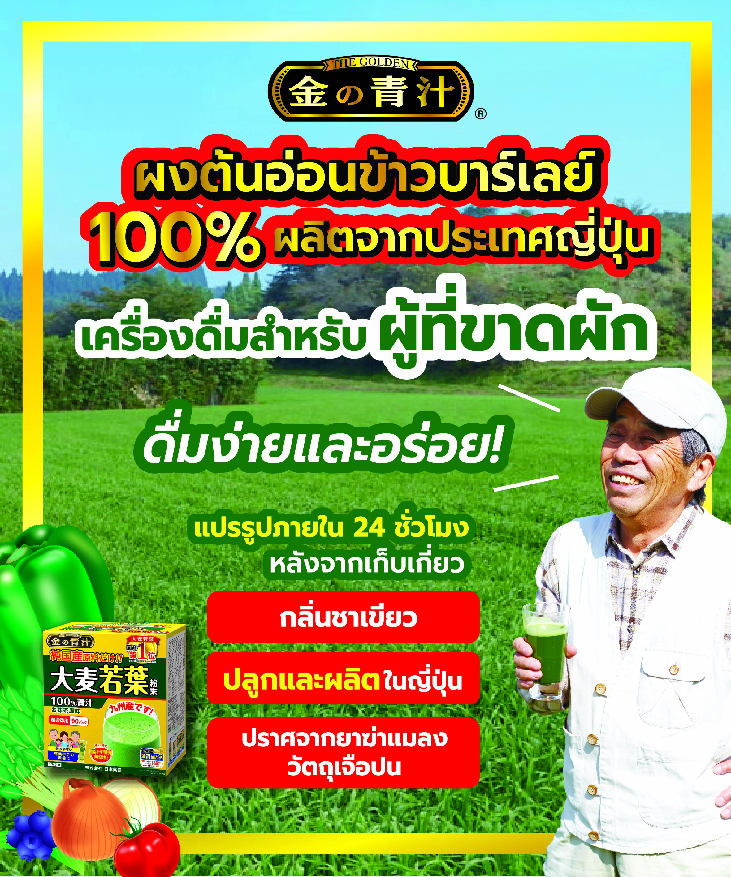 นิฮอนยักเคน ผงต้นอ่อนข้าวบาร์เลย์ 100% ผลิตจากประเทศญี่ปุ่น (14 ซอง)