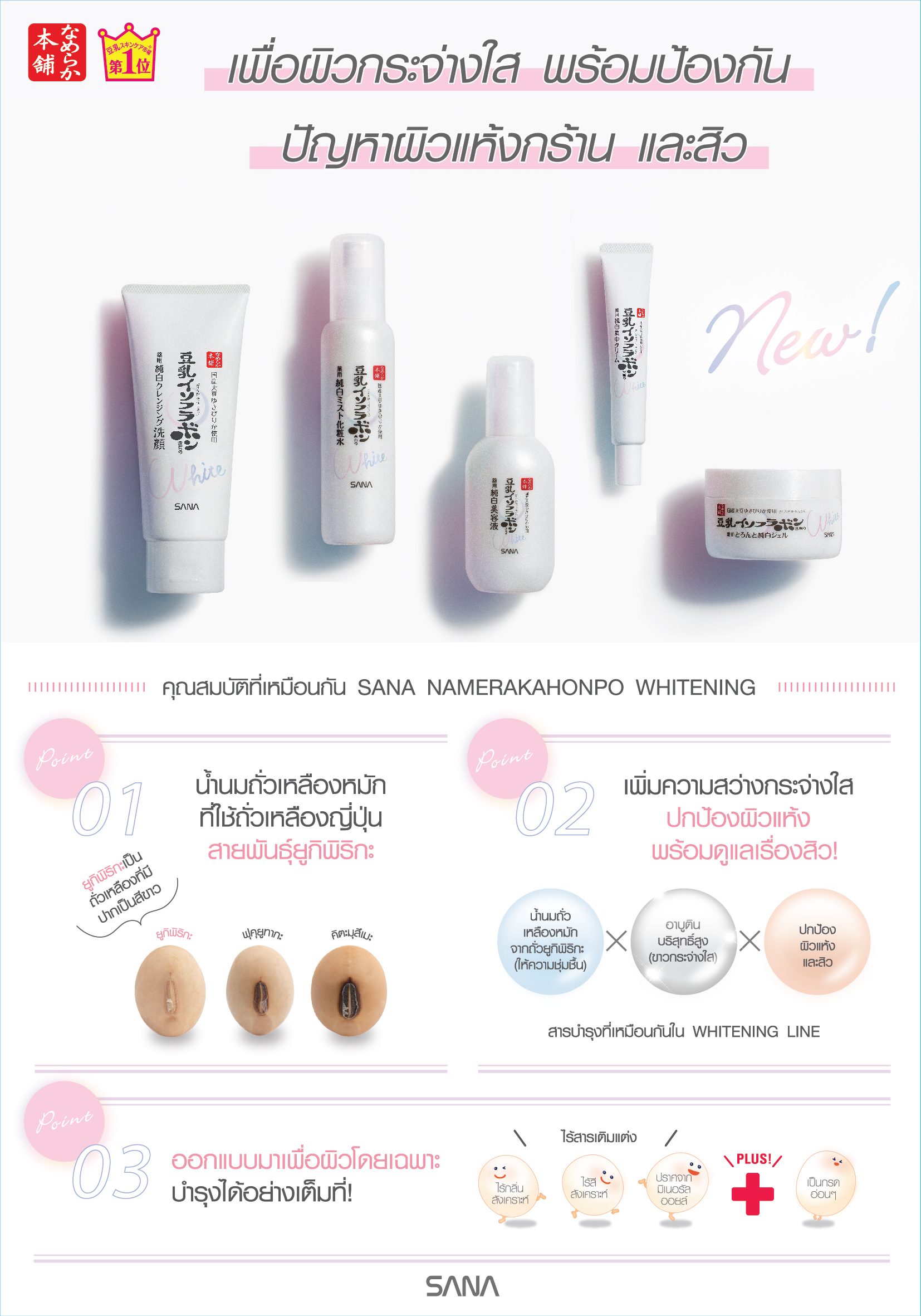 ผลิตภัณฑ์ทำความสะอาดผิวหน้าและเครื่องสำอาง เพื่อผิวกระจ่างใสพร้อมป้องกันสิว ผิวแตกแห้ง ช่วยผลัดเซลล์ผิวเก่ารวมไปถึงเมลานิน ฟองโฟมนุ่มฟูสามารถล้างเมคอัพที่เป็นธรรมชาติออกได้ มีส่วนประกอบหลักของสารสกัดจากนมถั่วเหลืองหมักสายพันธุ์ยูกิพิริกะ มี “Isoflavone” (คงความชุ่มชื้น), อาร์บูตินบริสุทธิ์สูง(บำรุงผิวให้ขาวสวย),สารสกัดจากชะเอมเทศ (ป้องกันผิวแตกแห้ง) และอนุพันธ์วิตามินซี(คงความชุ่มชื้น)