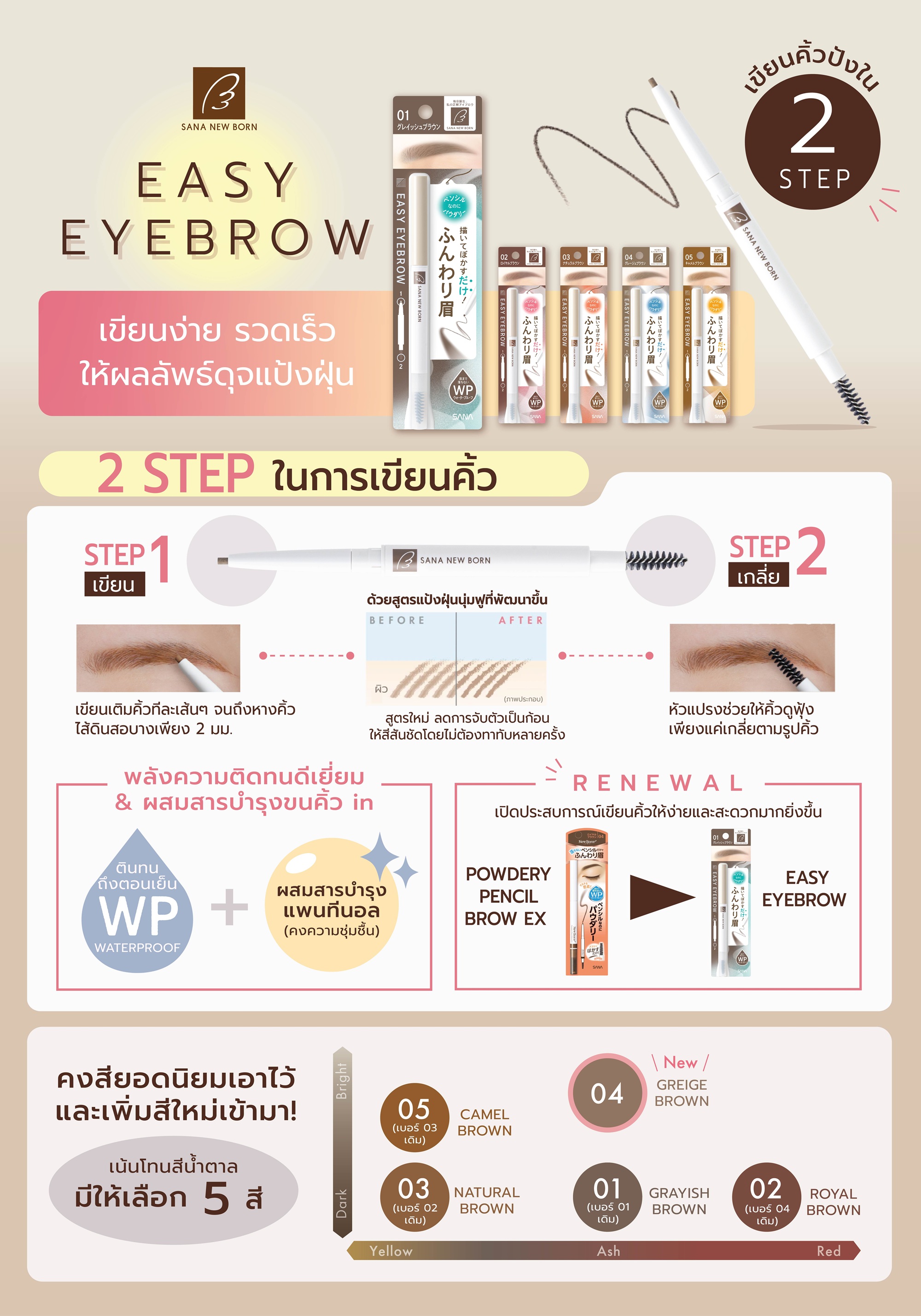 SANA NEW BORN EASY EYEBROW WATERPROOF 01 (GRAYISH BROWN) 0.1 g